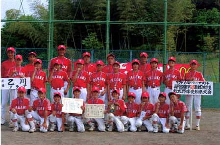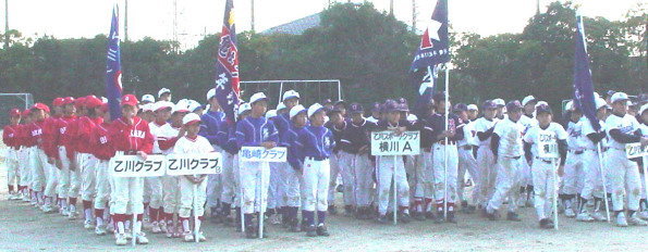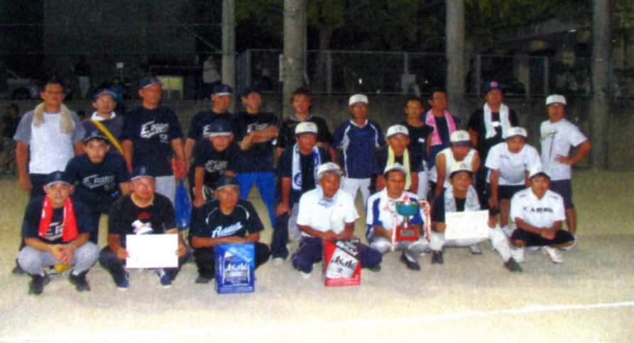 | 7月3日〜9月4日まで毎土曜日にナイターで繰りひろげられた 熱戦を制し、乙川東クラブ がみごと初優勝を飾りました。 |