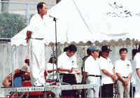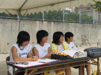 | 夏の暑さにも負けず! 楽しみました! (上段) 放送頑張りました! 近藤理事長挨拶 一番人気 かき氷 (中段) カーニバルの目玉種目 10人11脚競争 (下段) 表彰状の授与 YES−NOクイズ 閉会式キッチリと! |