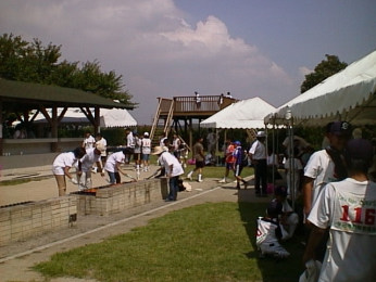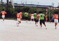 | 午前中は親睦試合で汗を流し、午後は各チームに別れリーグ戦で 真剣勝負を行いました。夏の暑い一日をホットな闘いで楽しみました。 |