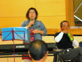 | 第16回総会の第4部として「乙川スポーツクラブ懇親会」がニコパルで行われました。 懐かしい昭和の青春歌等を、石川先生の楽しい会話を交えて全員で歌いました。 |