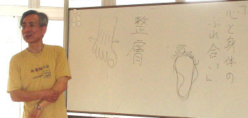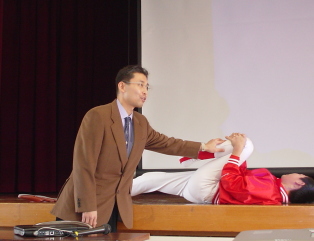 | 後藤英之先生からトレーニングのあり方や 注意点を医学的にご講演いただきました。 又、メディカルチェックの実技指導をして いただきました。 |