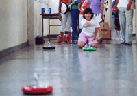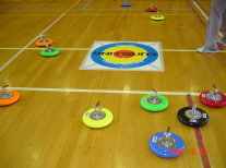 | 親子で楽しくカローリング! 的は遠くて、なかなか大変です。でも楽しかった。 |
