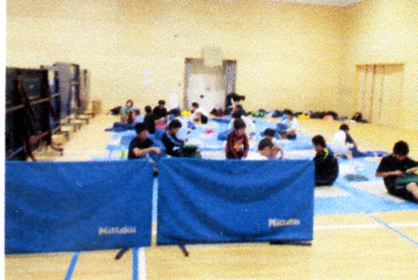 ![]() ↑避難所体験(宿泊研修) ←親子あそびクラブとの交流 |