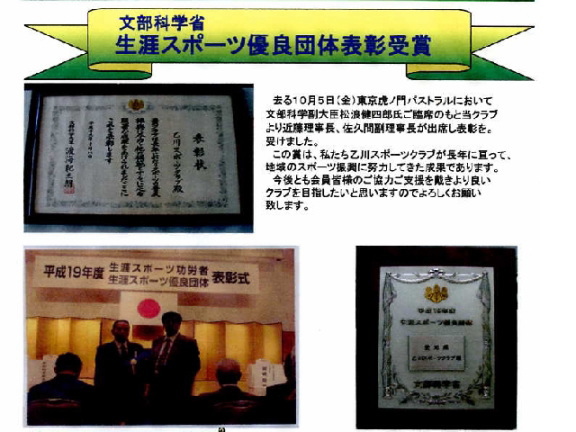 | 長年にわたるスポーツの普及振興の成果が認められました。 . (↓H19.11.1事務局だより 抜粋) |