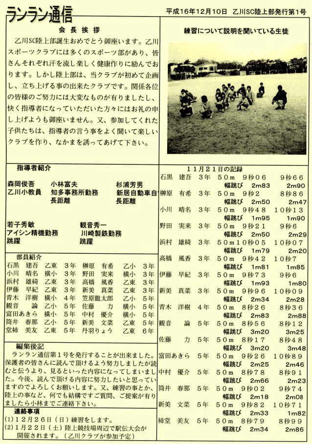 問い合わせ等は、乙川スポーツクラブ事務局にお願い致します。