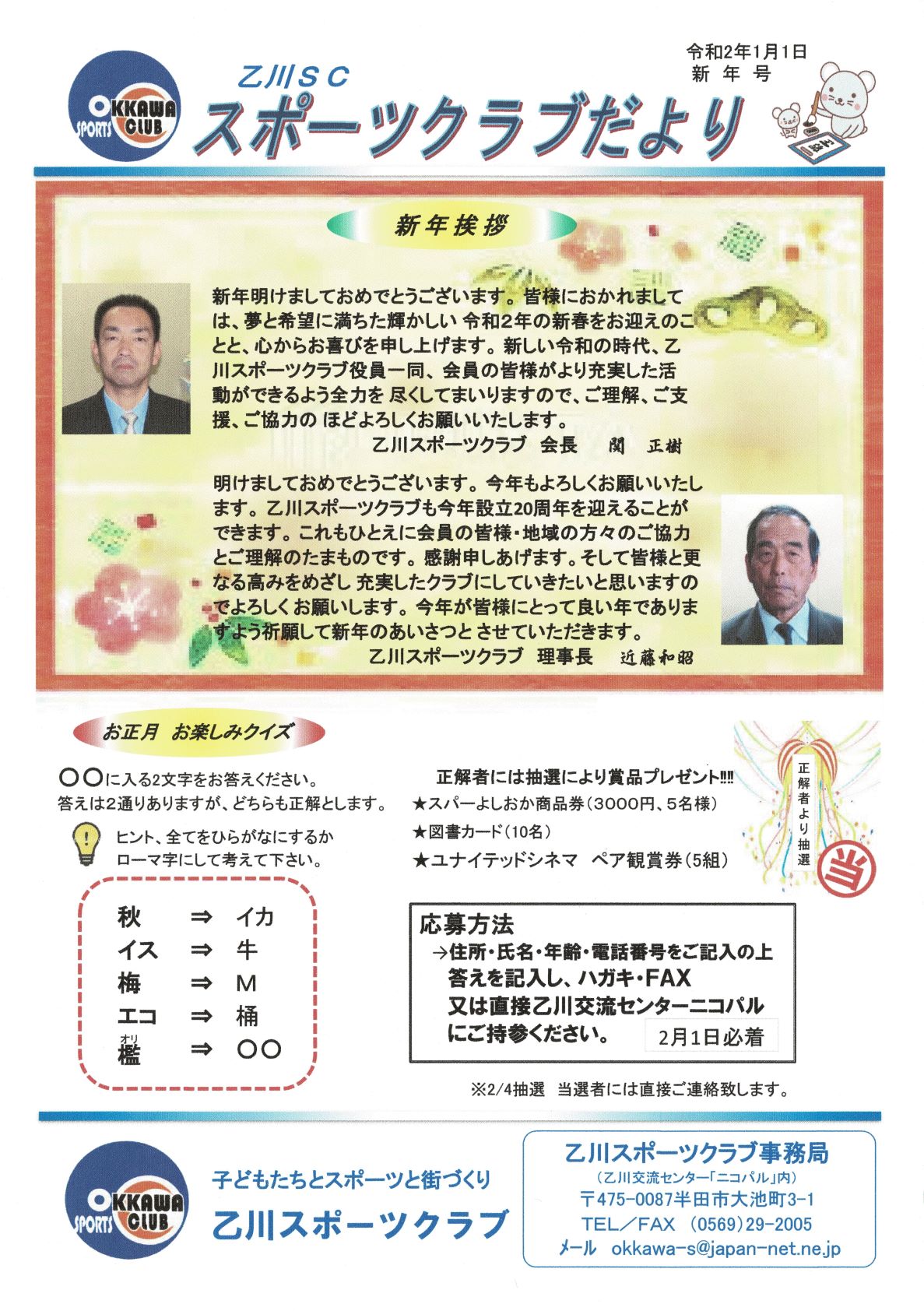 2020年1月:スポーツクラブだより